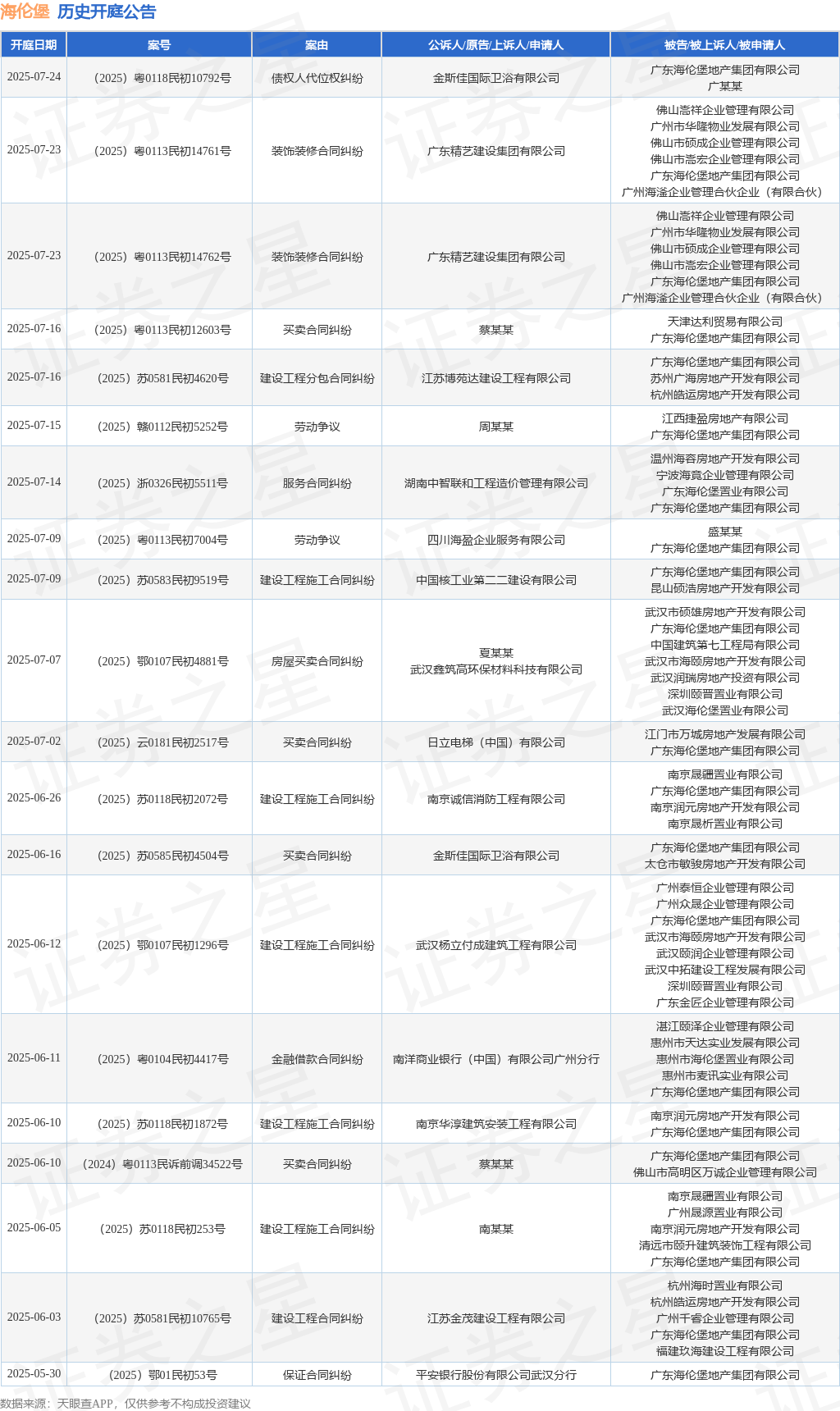 本站消息,根据天眼查APP显示,近日公布了一则广东海伦堡地产集团有限公司作为被告/被上诉人的开庭公告,详细内容如下: